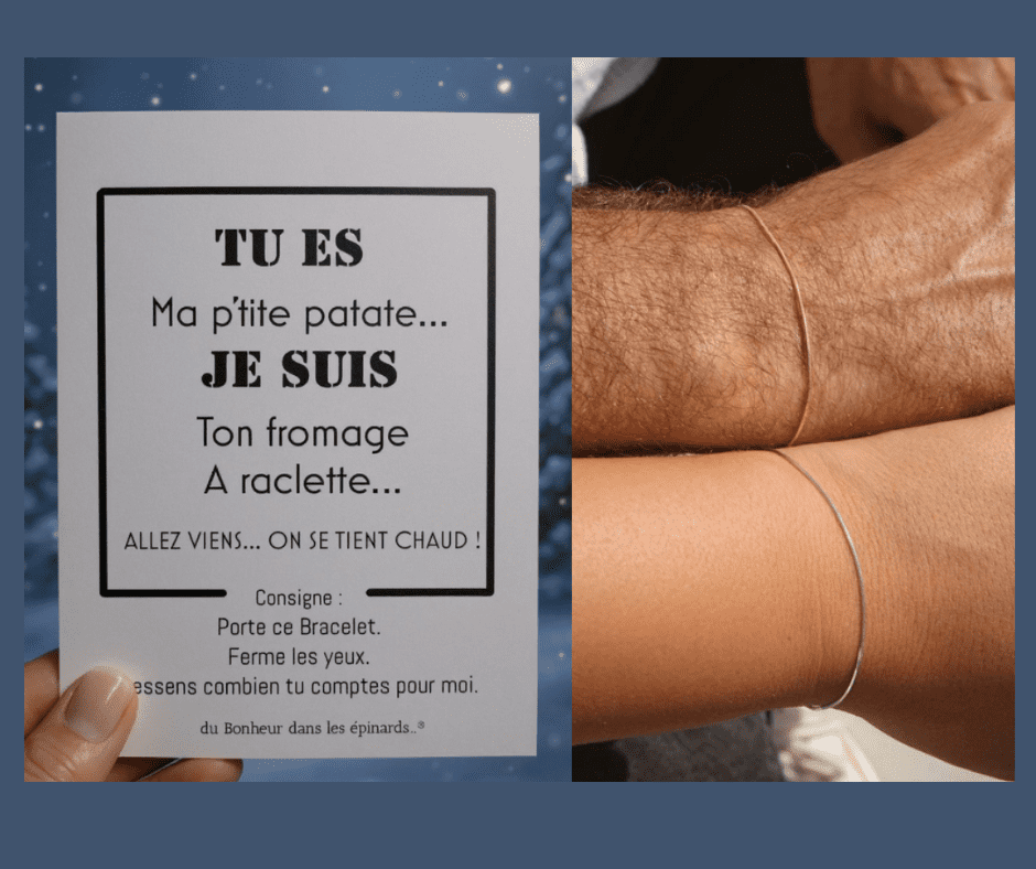 NOS BRACELETS sont bien plus que de simples bijoux ; ils sont une déclaration d’amour, un serment visuel de connexion profonde, un objet tangible qui incarne la promesse d'un amour sans faille. A partager avec l'être aimé !