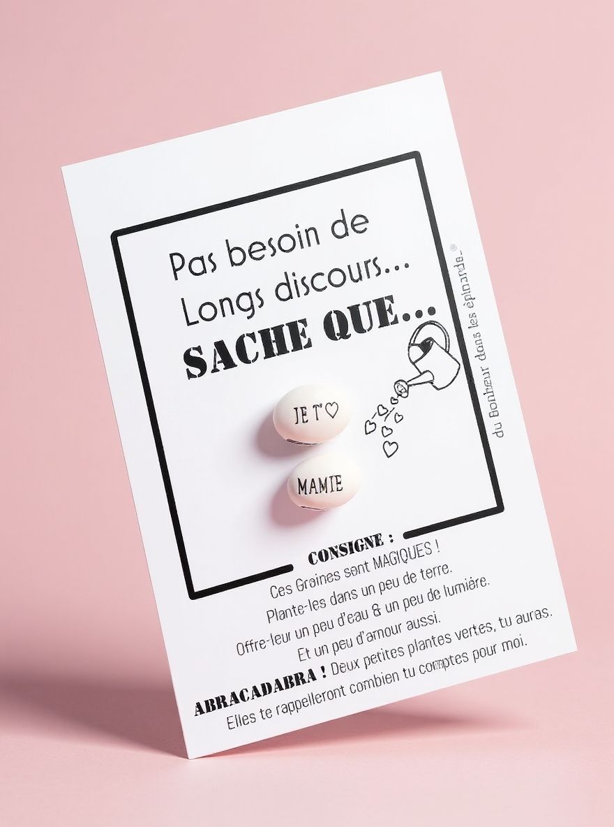 CARTE + 2 GRAINES MAGIQUES "JE T'AIME MAMIE" - F31
