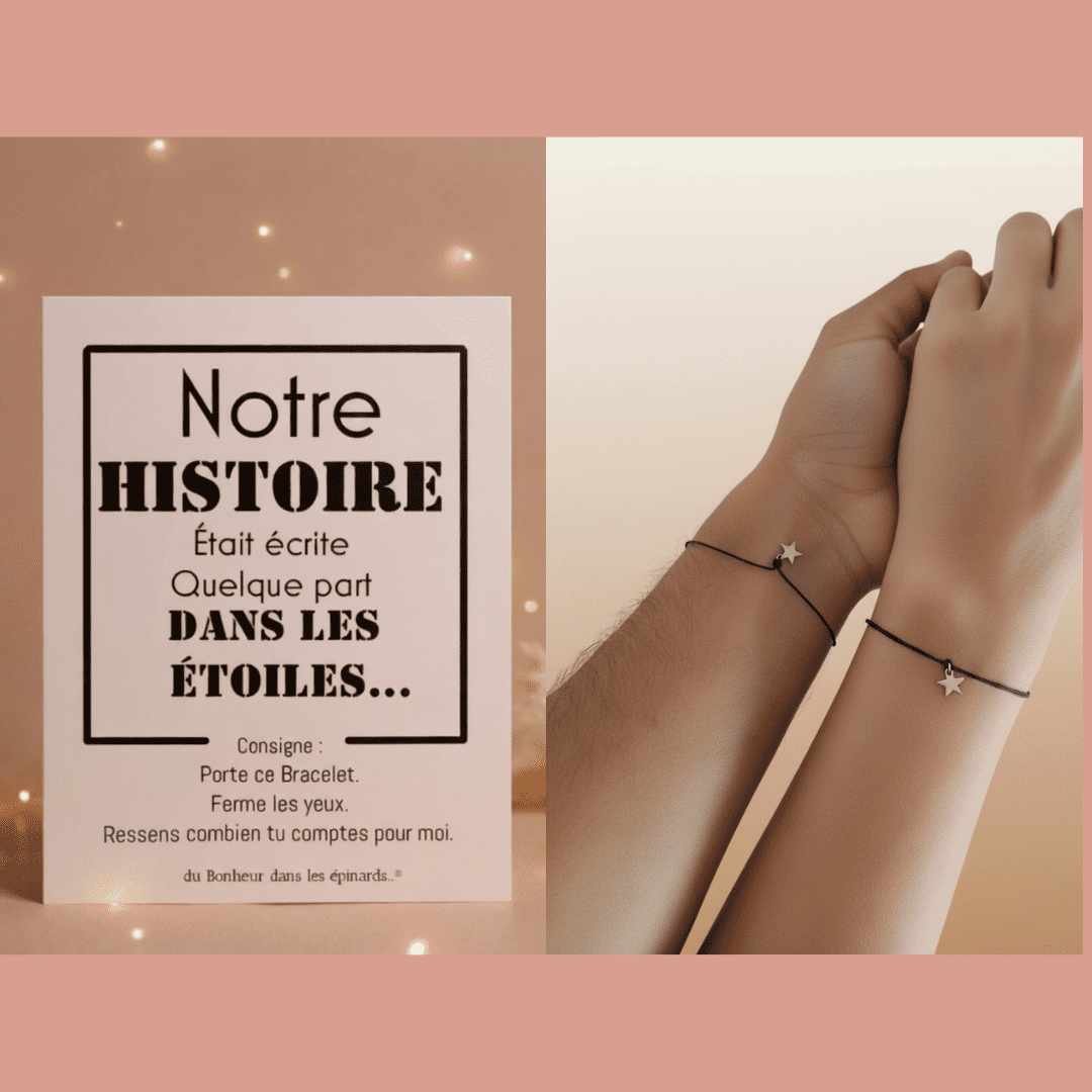 CARTE NOTRE HISTOIRE + 2 BRACELETS IMPERDABLES - PERLES ETOILES - R48