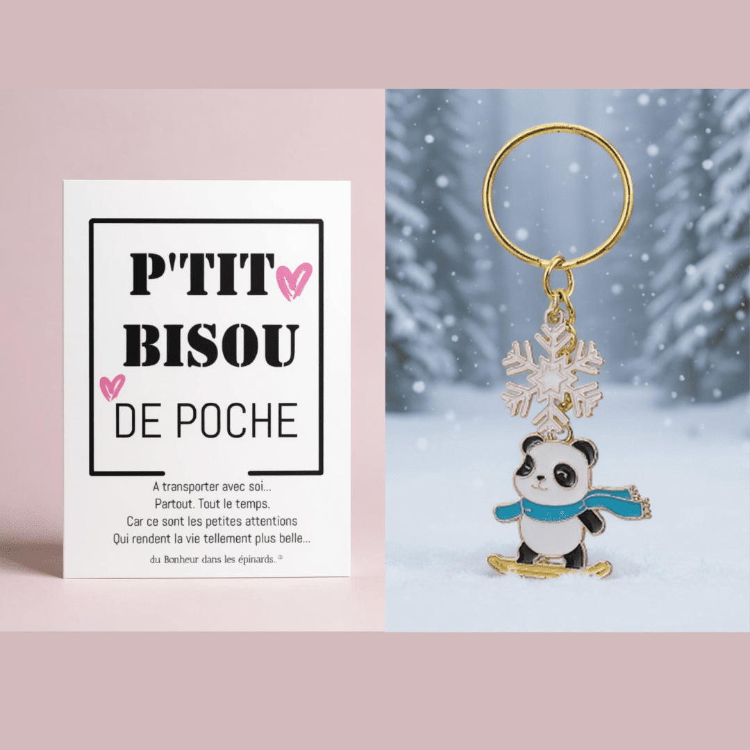 CARTE P'TIT BISOU DE POCHE + PORTE CLES PANDA EN HIVER - S28